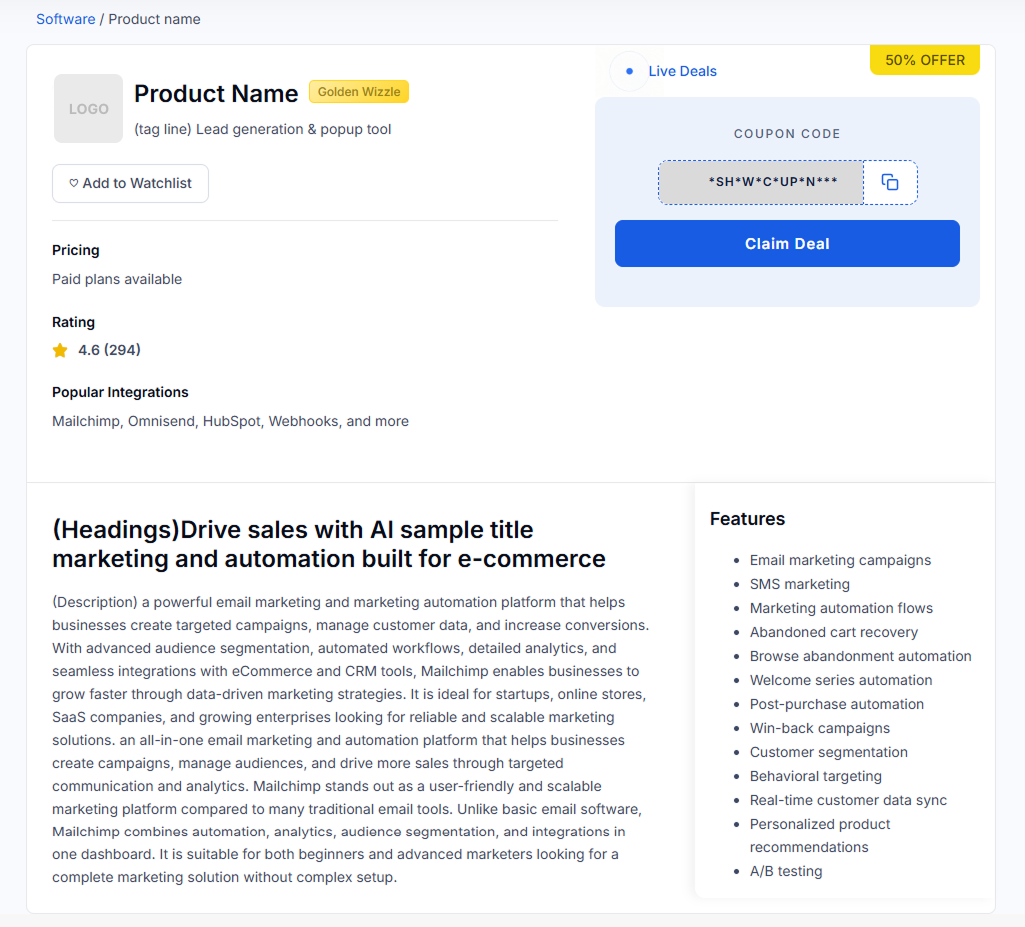 Sample Product Listing
